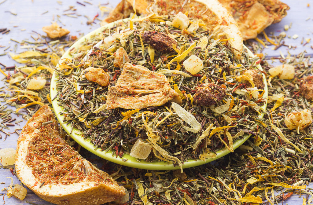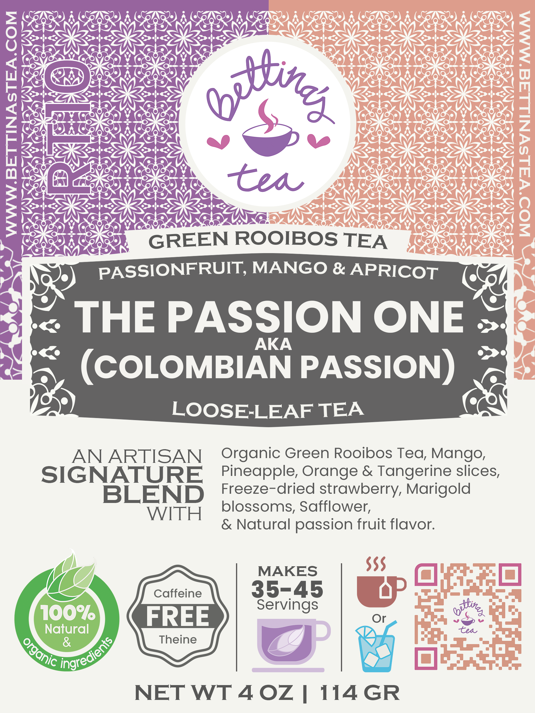 An Artisan blend with Organic Green Rooibos Tea, Mango, Pineapple, Orange & Tangerine slices, Freeze-dried strawberry, Marigold blossoms, Safflower, & Natural passionfruit flavor.